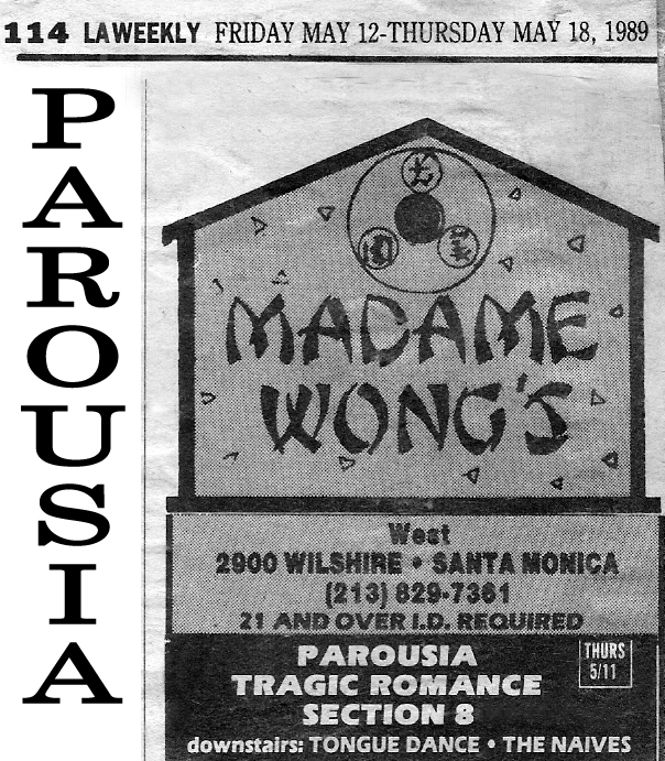 Parousia’s busy spring performance schedule began in May when our song “Place Your Bets” hit the airwaves on KROQ, and then landing a spot as opening act for The Knack at Madame Wong’s West in Santa Monica and then performing…